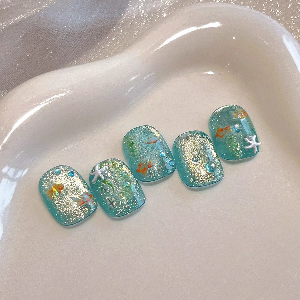 春夏新款美甲贴纸贝壳极光小金鱼海洋多巴胺卡通星星小清新指甲贴