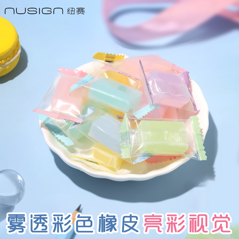 得力纽赛糖果雾透橡皮擦小学生专用擦字成线擦拭成条干净不留痕少屑橡皮儿童素描美术橡皮擦