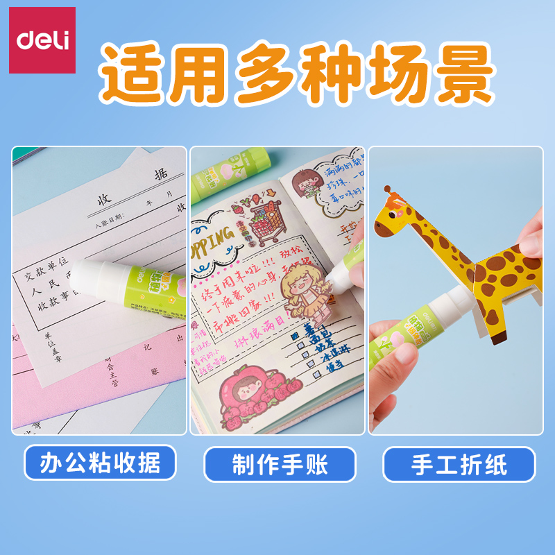 得力固体胶强力胶棒高粘度粘性幼儿园儿童手工植物配方办公财务学生diy制作温和亲肤胶水办公用品无甲醛无毒