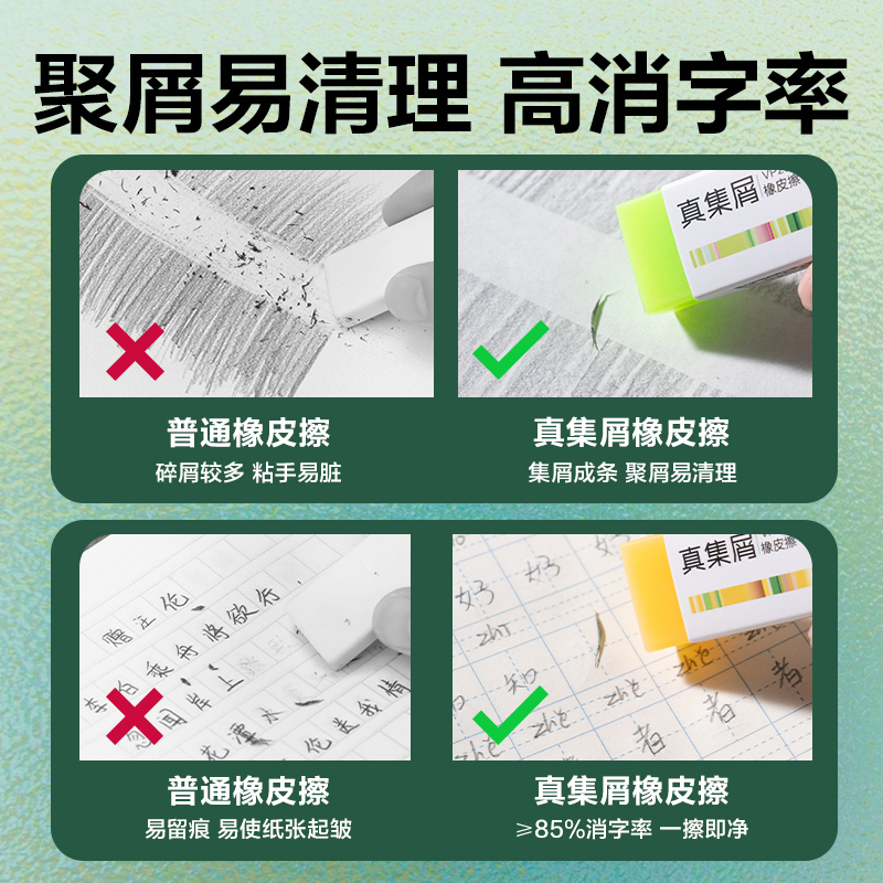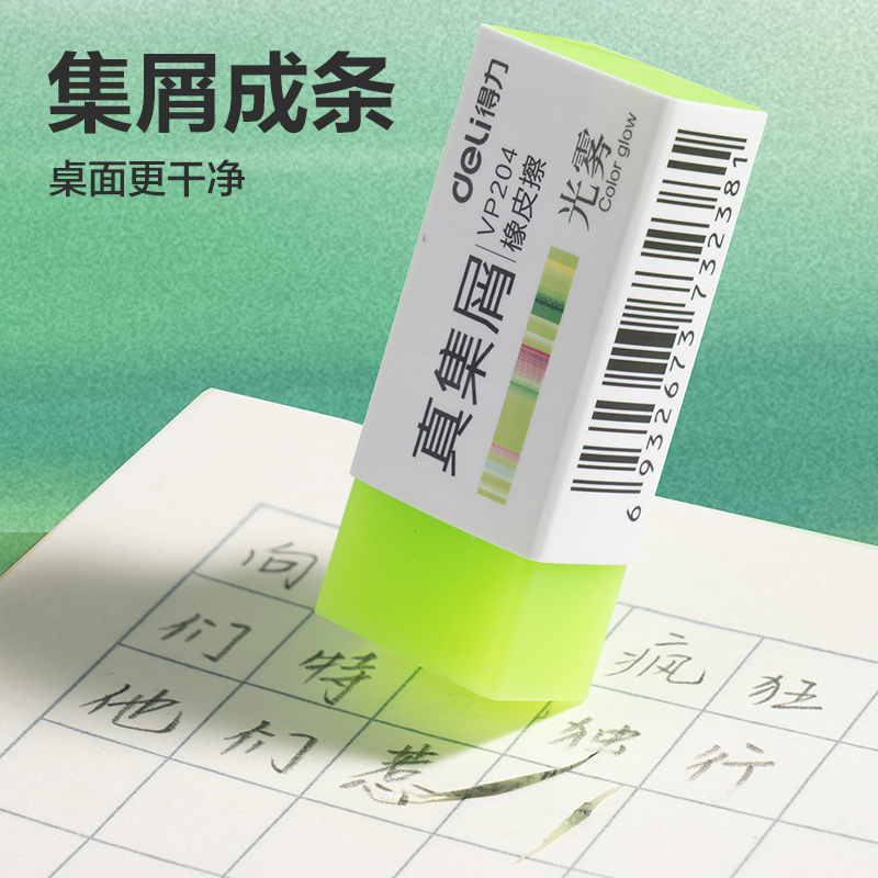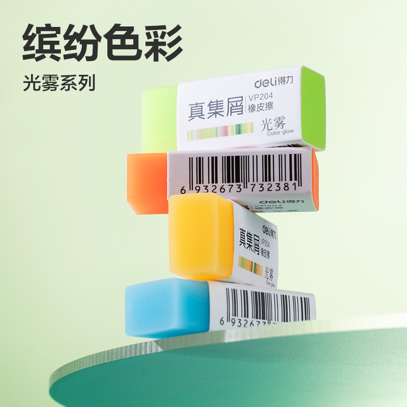 得力真集屑光雾彩色橡皮擦擦字成线干净少屑无毒安全高颜值素描美术考试橡皮聚屑