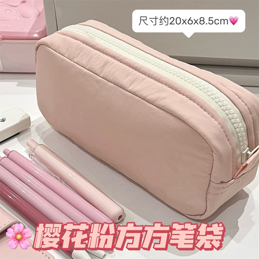 纯色小方块笔袋粉色少女心高颜值学生用文具盒大容量多隔层收纳袋