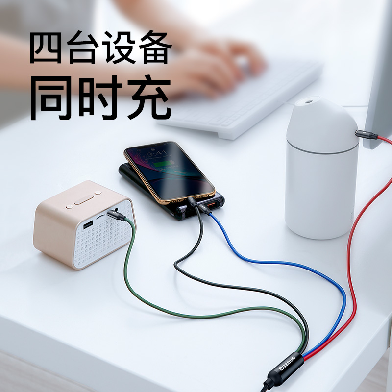 倍思数据线三合一充电线器一拖三快充三头适用多头车载苹果Typec充手机车超级车用汽车USB伸缩多功能多用电器
