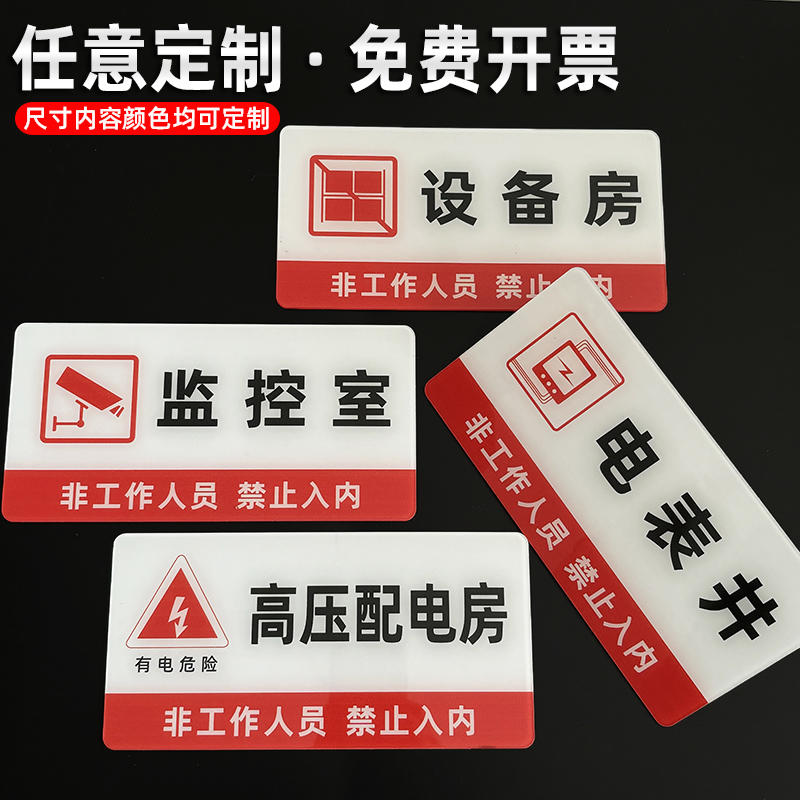 亚克力消防水泵配电房有电危险消防排烟机井门牌标牌警示牌提示牌配电室标识电柜水泵房监控控制室机房消控室