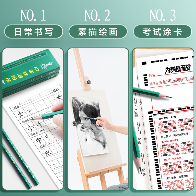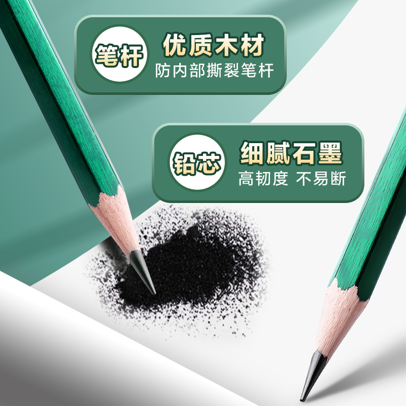 Nusign纽赛小绿杆黑木铅笔hb小学生专用一二年级学习用品正姿高颜值加粗铅芯无铅毒得力书写绘画矫姿素描初学