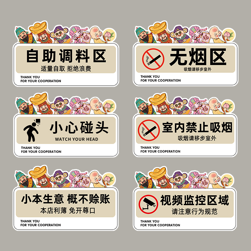 请先付款再就餐提示牌打包加一元免费自助区调料区标识牌饭店餐厅食堂温馨提示牌餐具已消毒标示指示牌定制