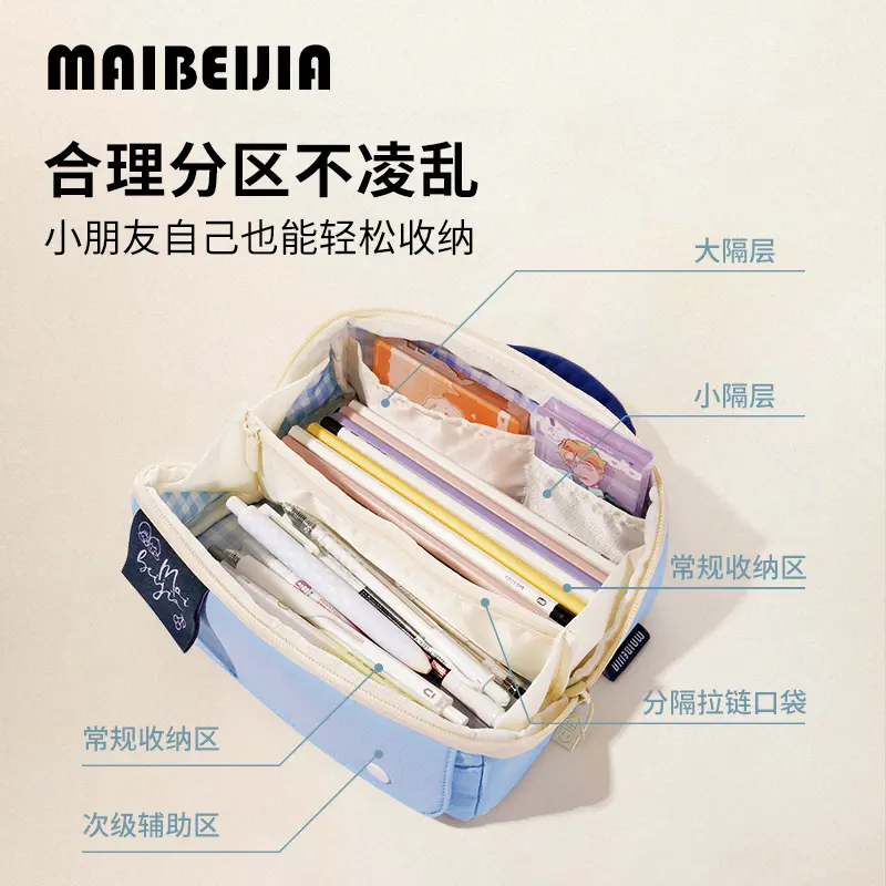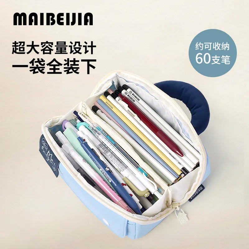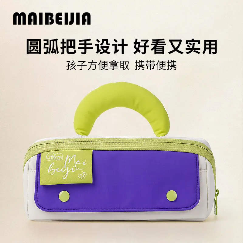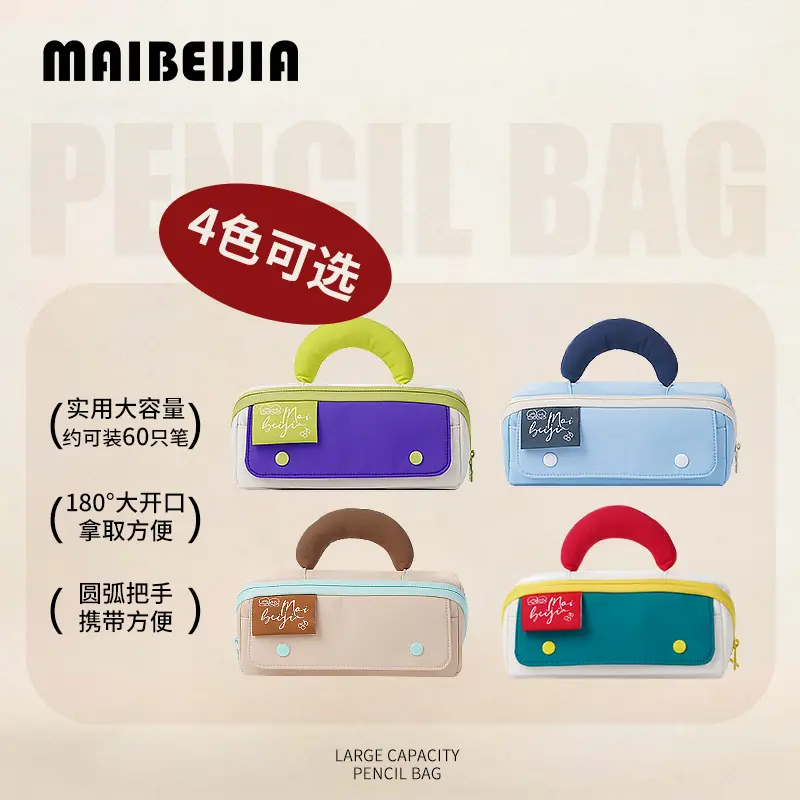 麦贝佳香蕉拎手大容量吐司分仓笔袋双拉链撞色高颜值大开口简约笔