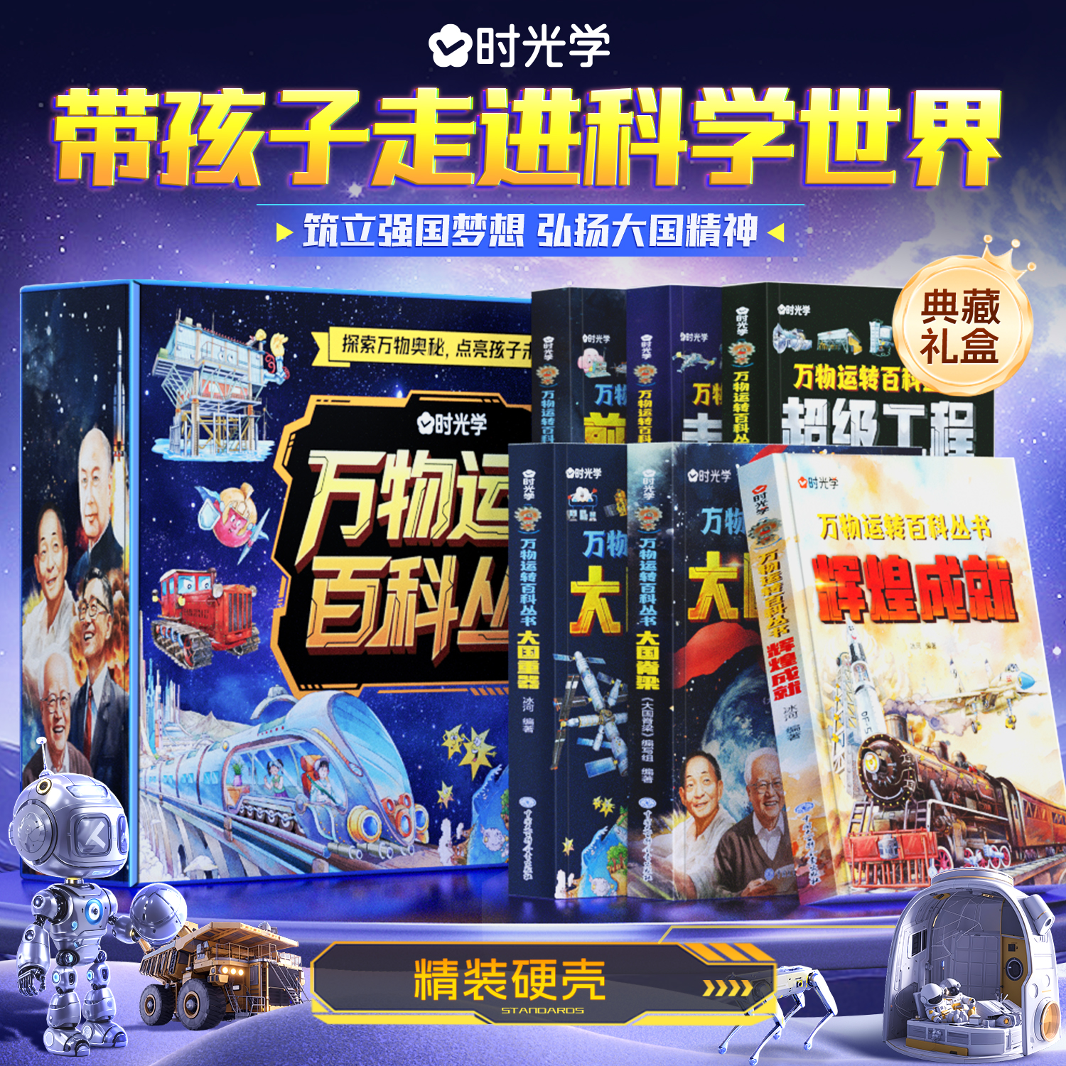 时光学万物运转百科全书6册礼盒装大国脊梁辉煌成就前沿科技未来重器超级工程少儿6-12岁儿童漫画书科学启蒙科普
