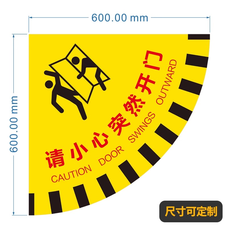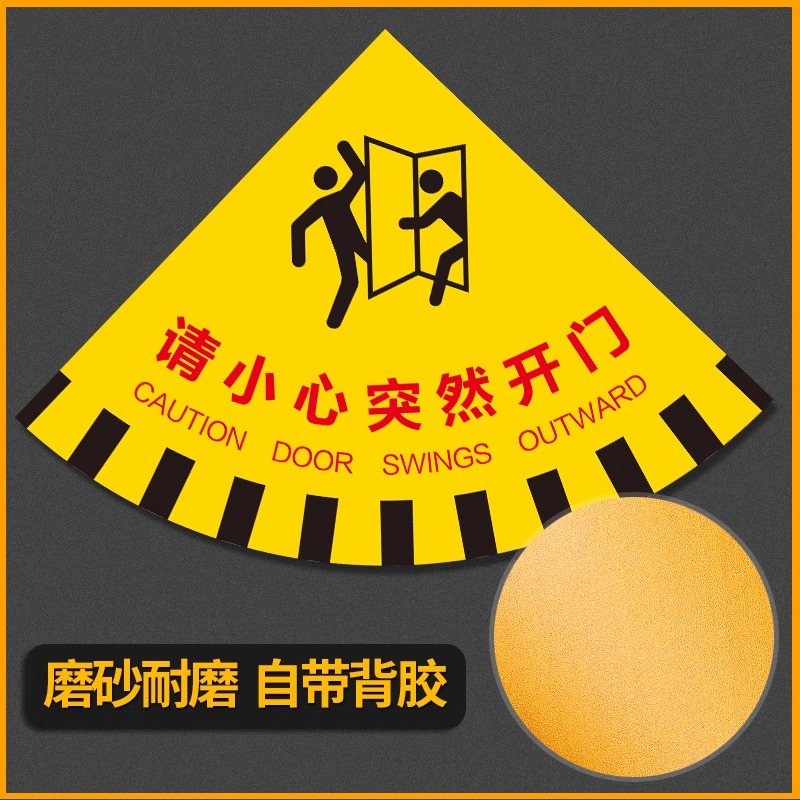 请小心突然开门标识贴纸提示地贴扇形安全地贴生产车间标示当心开门温馨提示耐磨耐脏防水滑PVC关门警示地贴