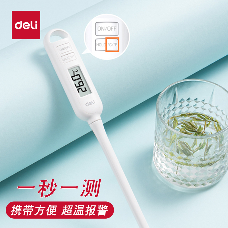 得力温度计水温计厨房食品烘焙油温计探针式婴儿奶温计电子测温仪