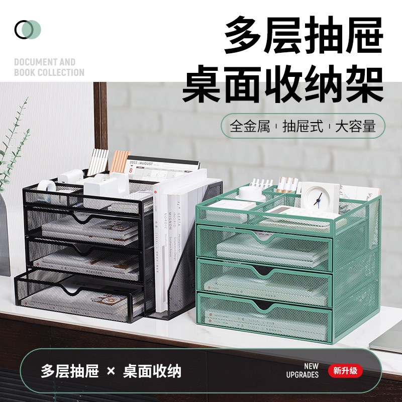 金属可抽拉文件盘文件架桌面多层办公室a4金属网纹收纳架分层文件筐立体整理资料文件档案书架加厚铁艺收纳盒
