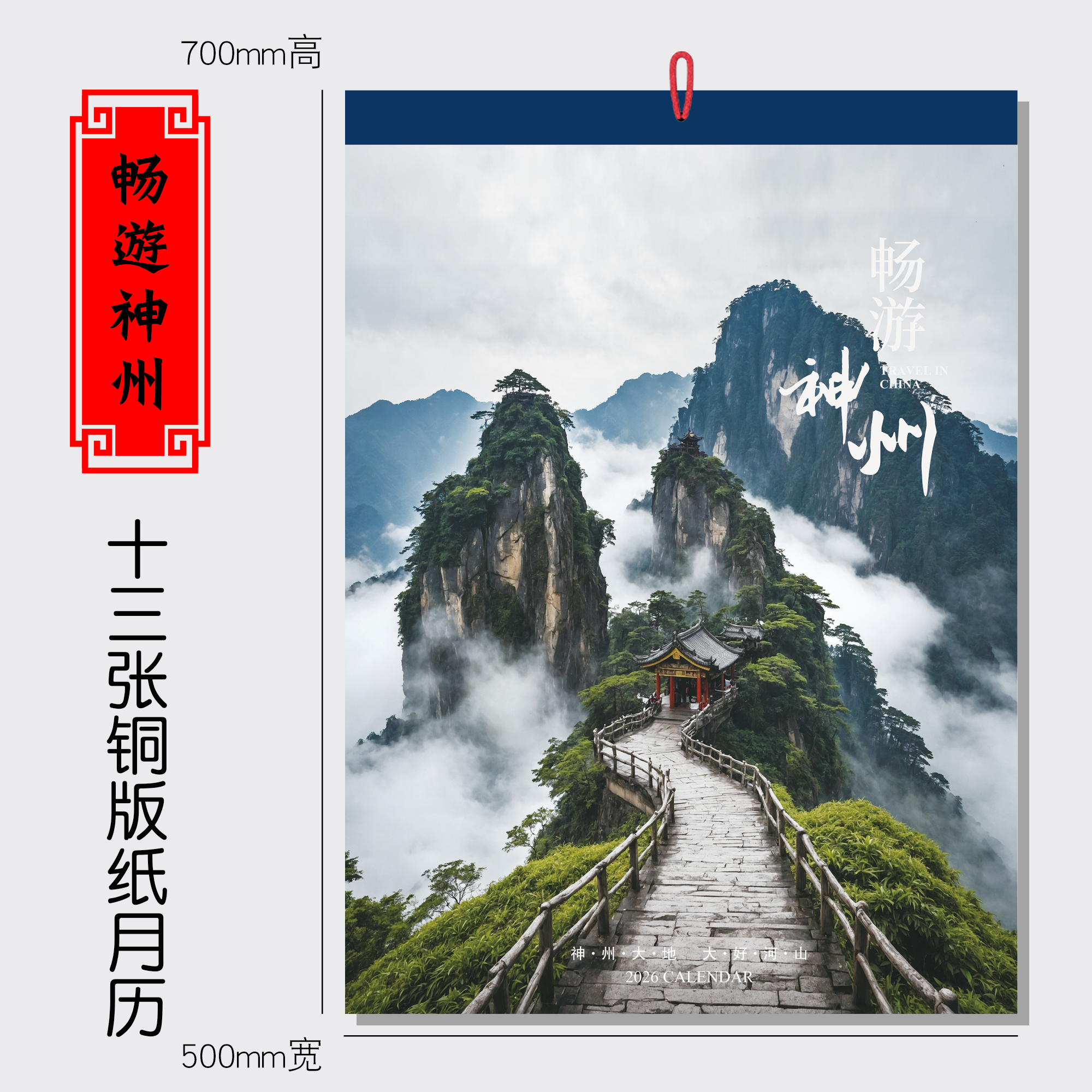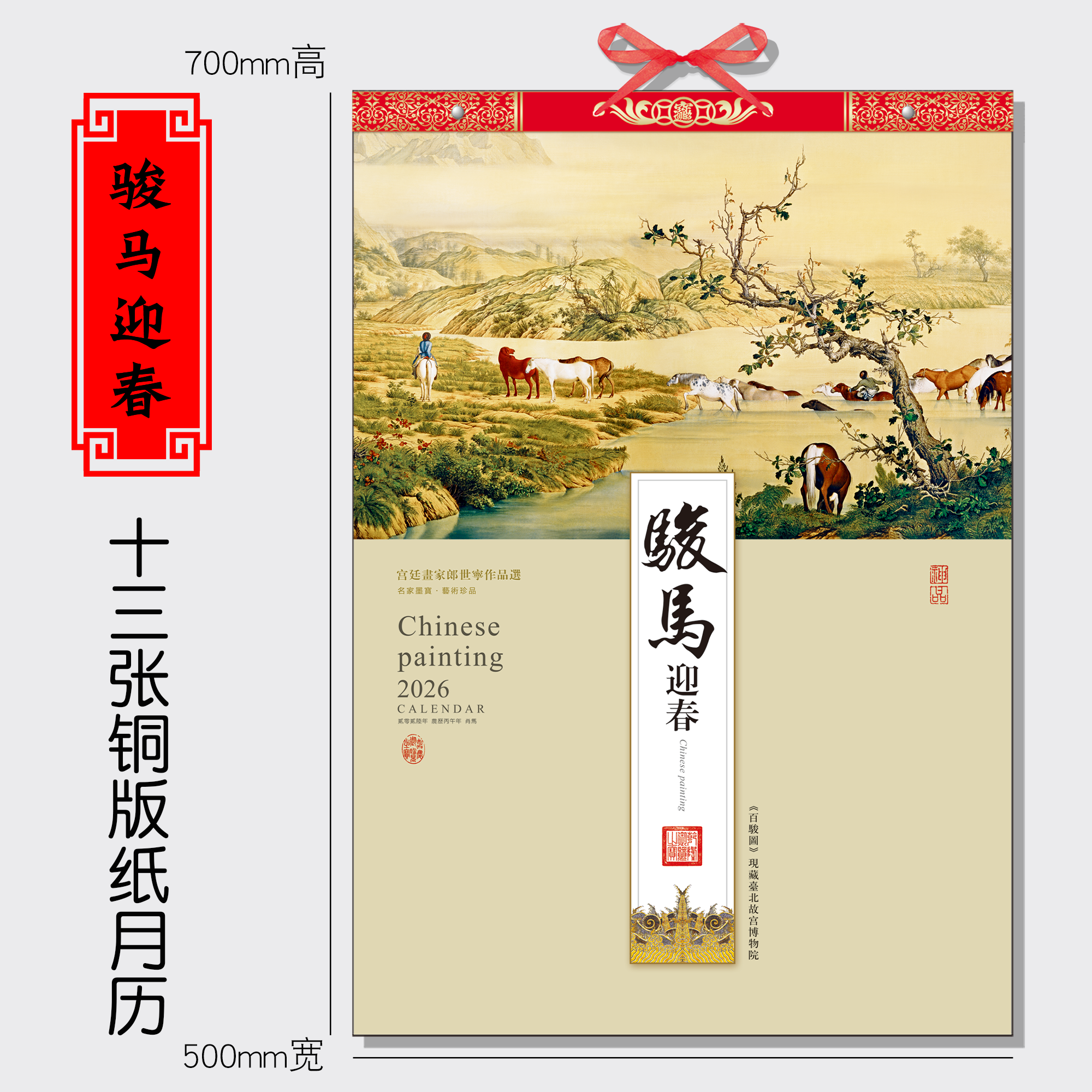 新款2026马年挂历现代风景一月一张挂历定制家用挂墙记事月历装饰画中国风山水画国画花鸟图年历打卡