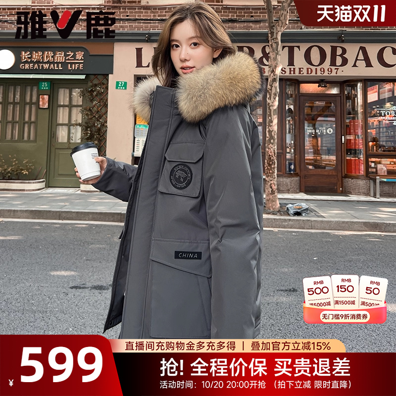 雅鹿派克服羽绒服女款冬2025新款爆款时尚巨好看的工装大毛领外套