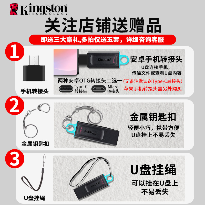 金士顿u盘64g汽车载大容量手机电脑两用typec口官方DTX店正品优盘