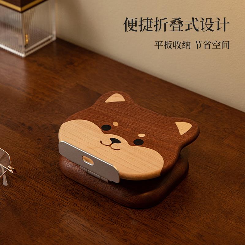 顽木柴犬手机架可调节角度面创意实木质懒人平板电脑支撑架礼物