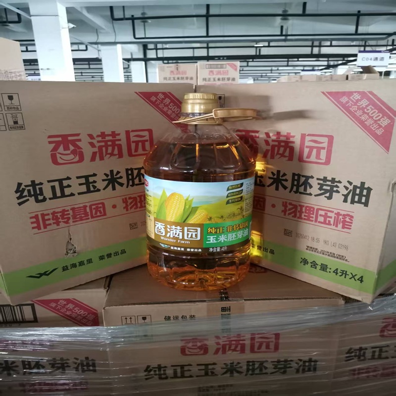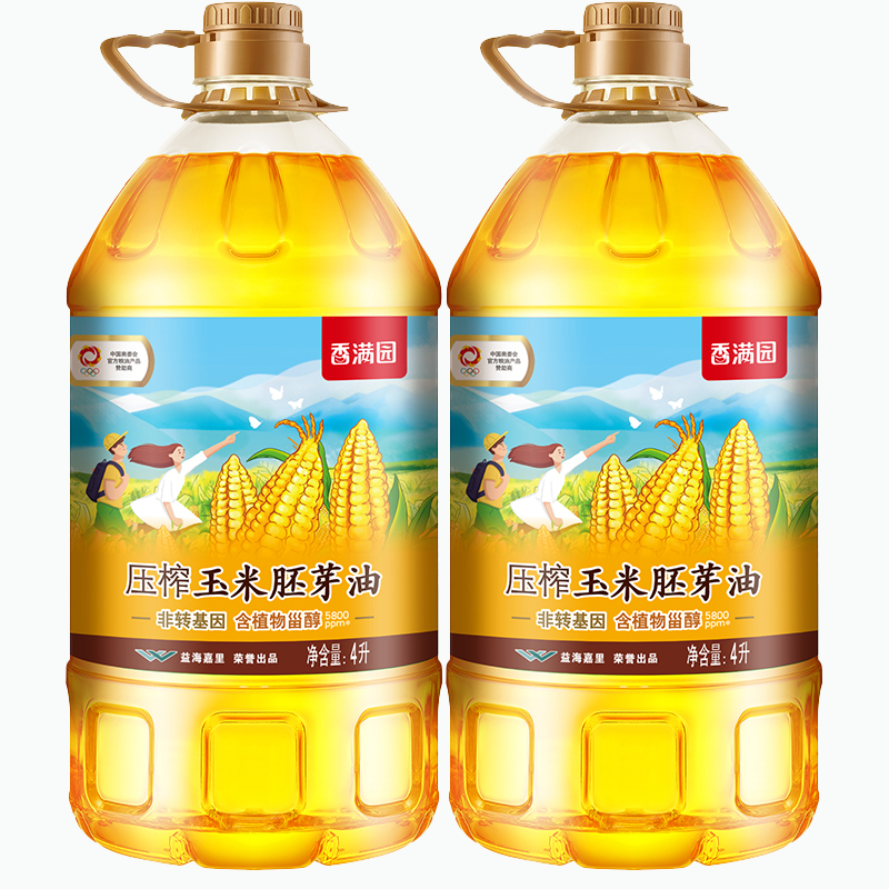香满园压榨非转基因玉米油4L*2桶纯正玉米胚芽油桶装煎炒烹炸