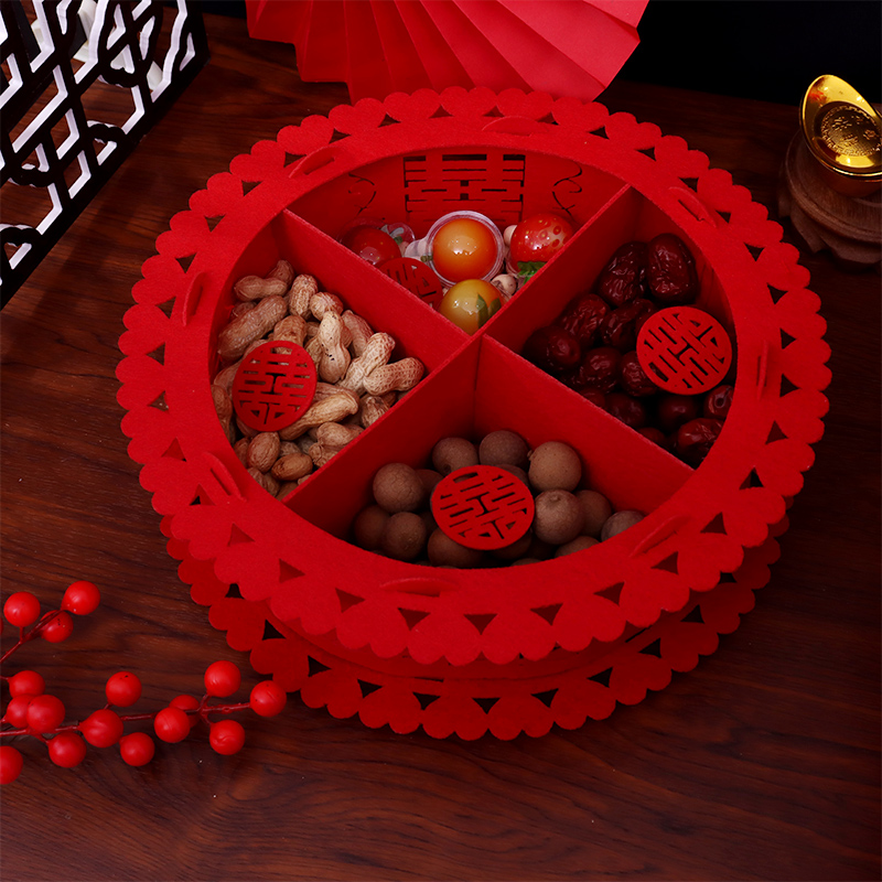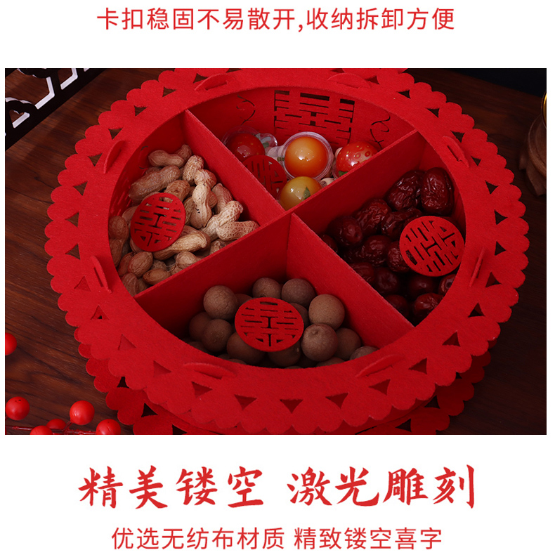 婚庆果盘家用干果盘子结婚盘红色无纺布喜糖瓜子中式婚礼用品喜事