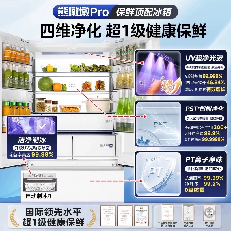 【新品】美的熊墩墩Pro600双系统零嵌自动制冰法式双开门家用冰箱