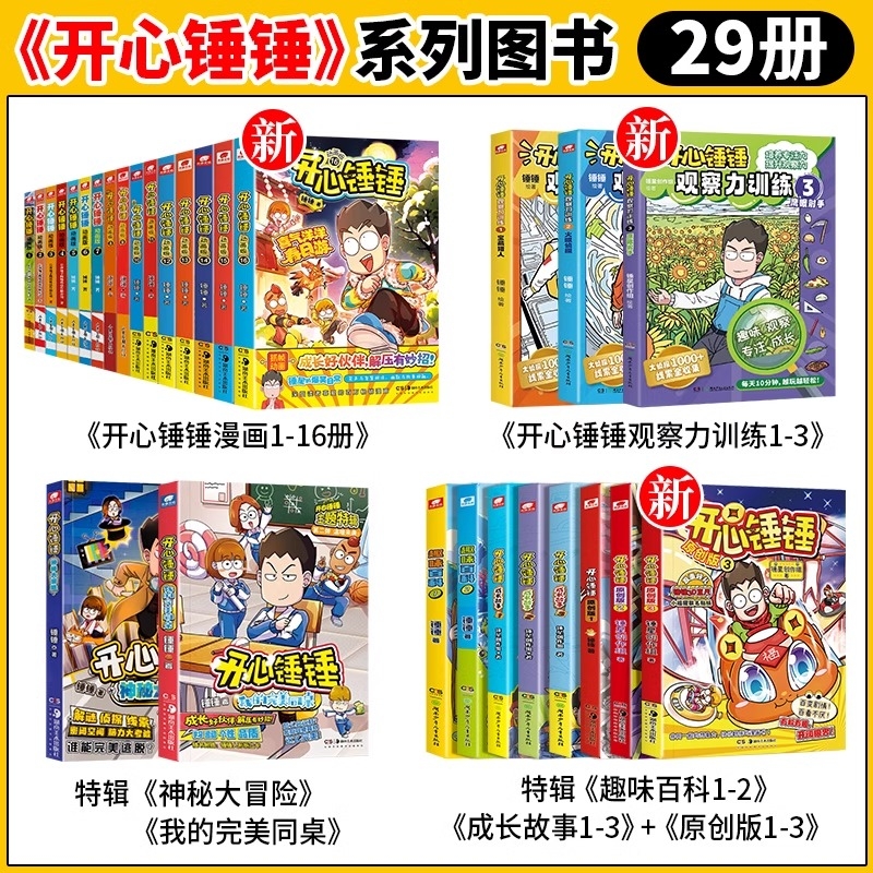 开心锤锤漫画书全套29册动画版1-16册特辑2册观察力3册6-8-9-12岁小学生三四五年级动画爆笑校园生活课外书侦探大冒险