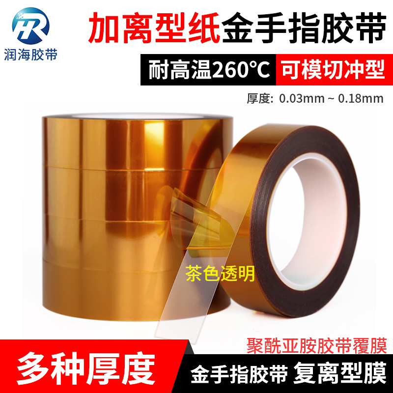 润海0.03mm金手指胶带加离型纸pi胶布复底膜可模切冲型麦拉片多种厚度原材覆透明膜定制形状圆茶色耐高温标签
