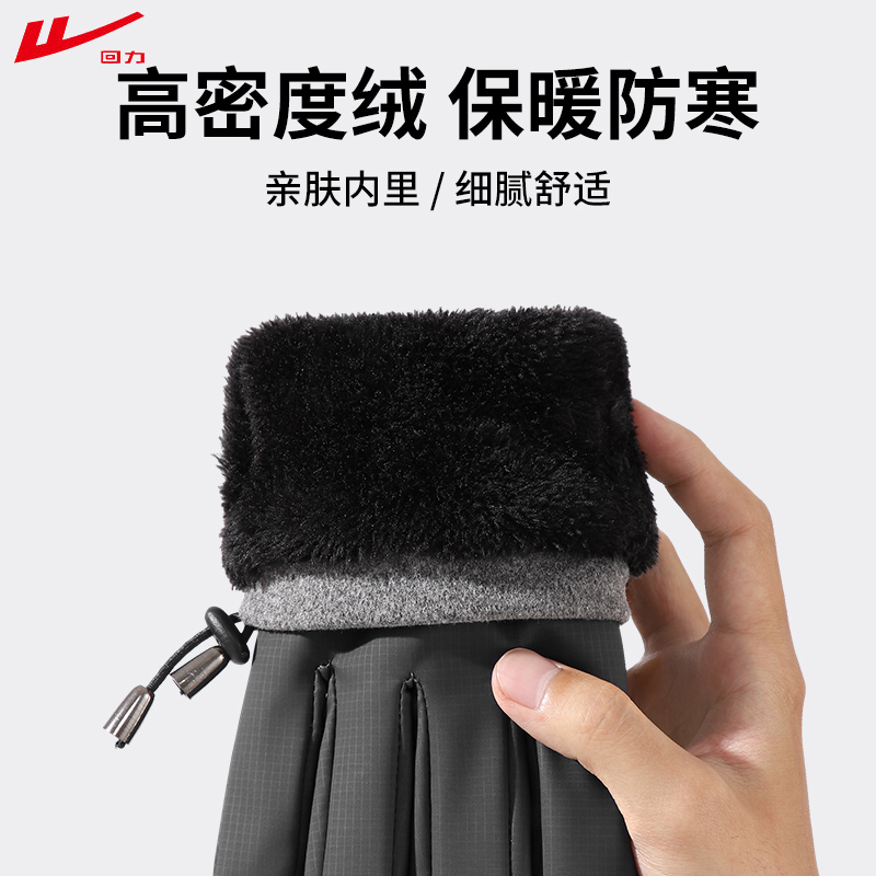 回力冬季滑雪运动手套男保暖男加绒加厚保暖触屏防寒骑行防水手套