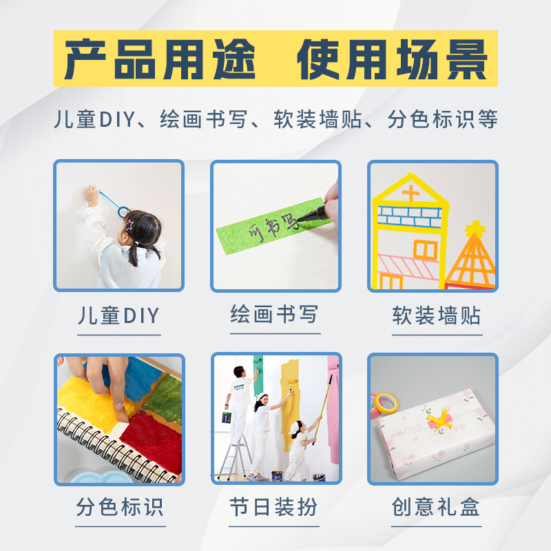 友日久彩色美纹纸胶带墙面无痕分色标线不留胶美缝婚房布置儿童学生手工DIY装饰贴条红黑蓝美术生专用美纹纸