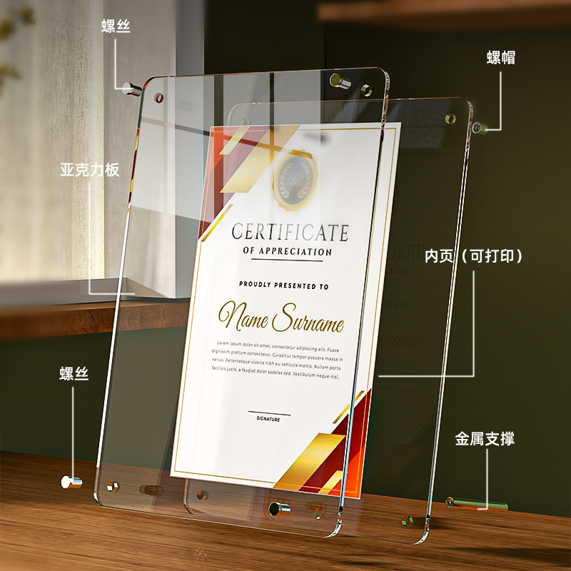 A4L型授权牌相框荣誉证书框立牌桌摆亚克力证书框授权代理证书摆台装裱营业执照展示牌可横可竖可挂墙广告牌