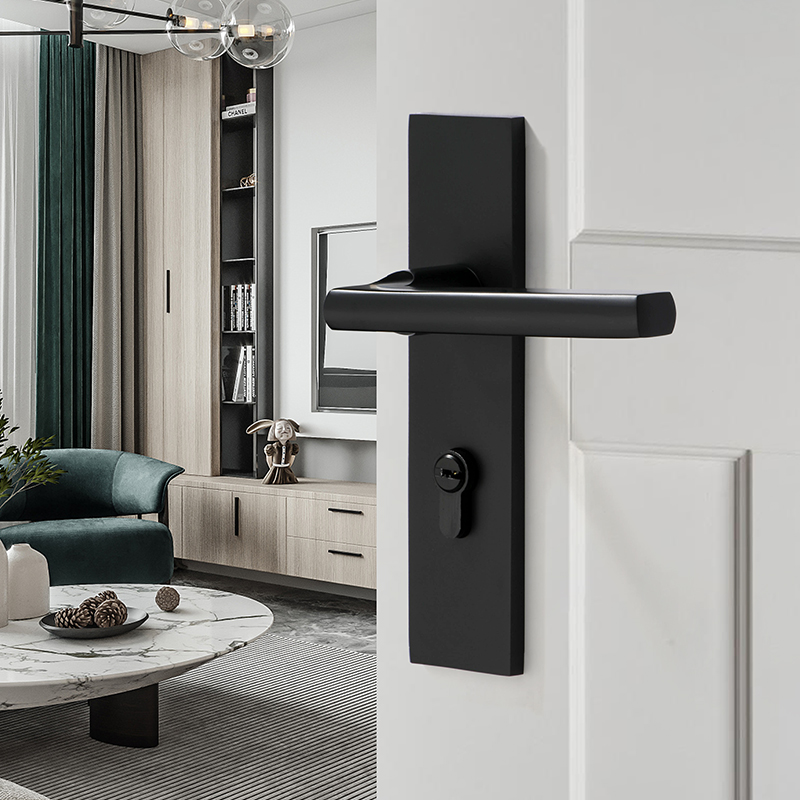 黑色室内卧室房门锁家用房间实木门把手锁具通用型分体磁吸静音锁