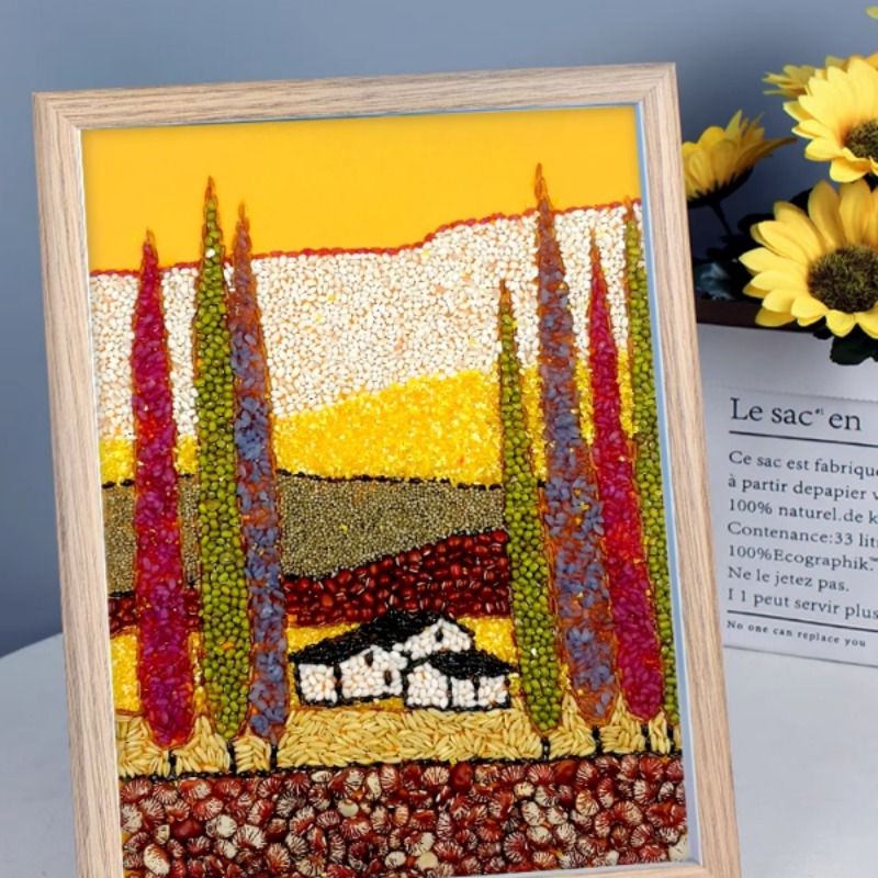 五谷杂粮diy粘贴画手工豆子种子风景画制作半成品材料包非遗活动