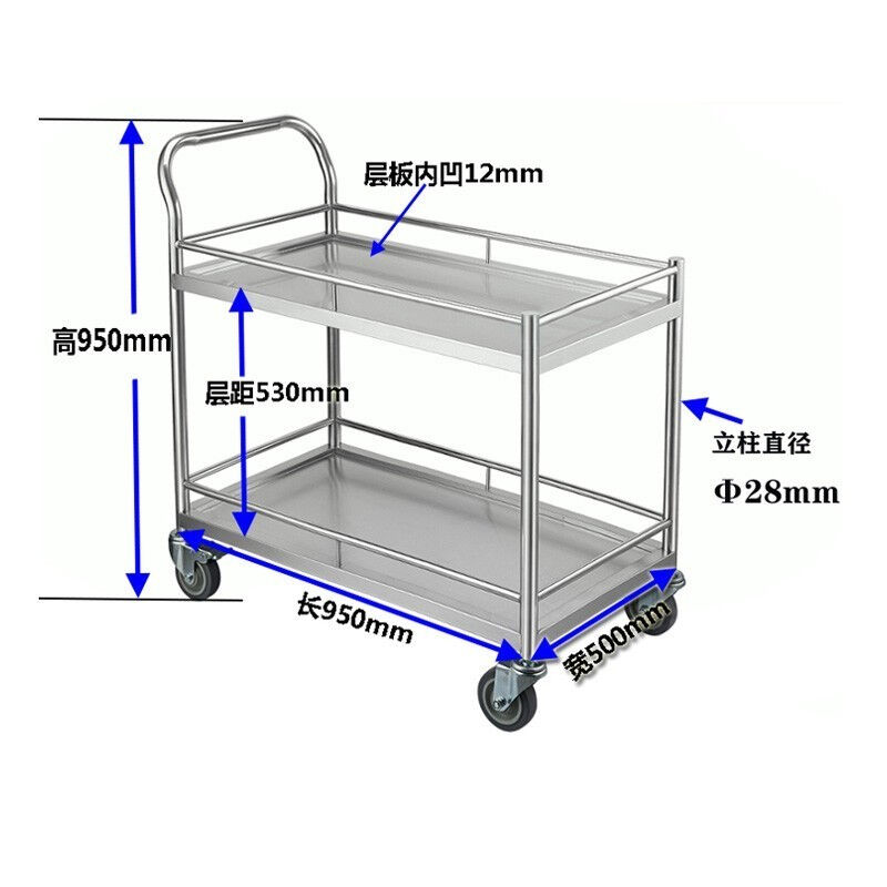 盾牙(DUNYA)小推车304双层不锈钢手推车护理换药车(栏杆定制钢