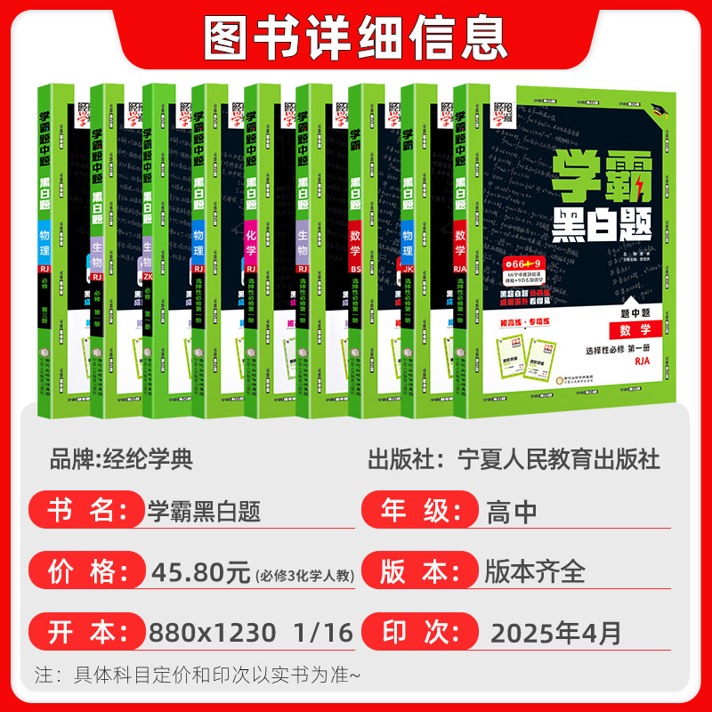 2025秋4四星学霸黑白题中题高中数学必修一物理化学生物人教浙教版高一高二选择性必修上册高1高2同步必刷题练习题第一册苏教版