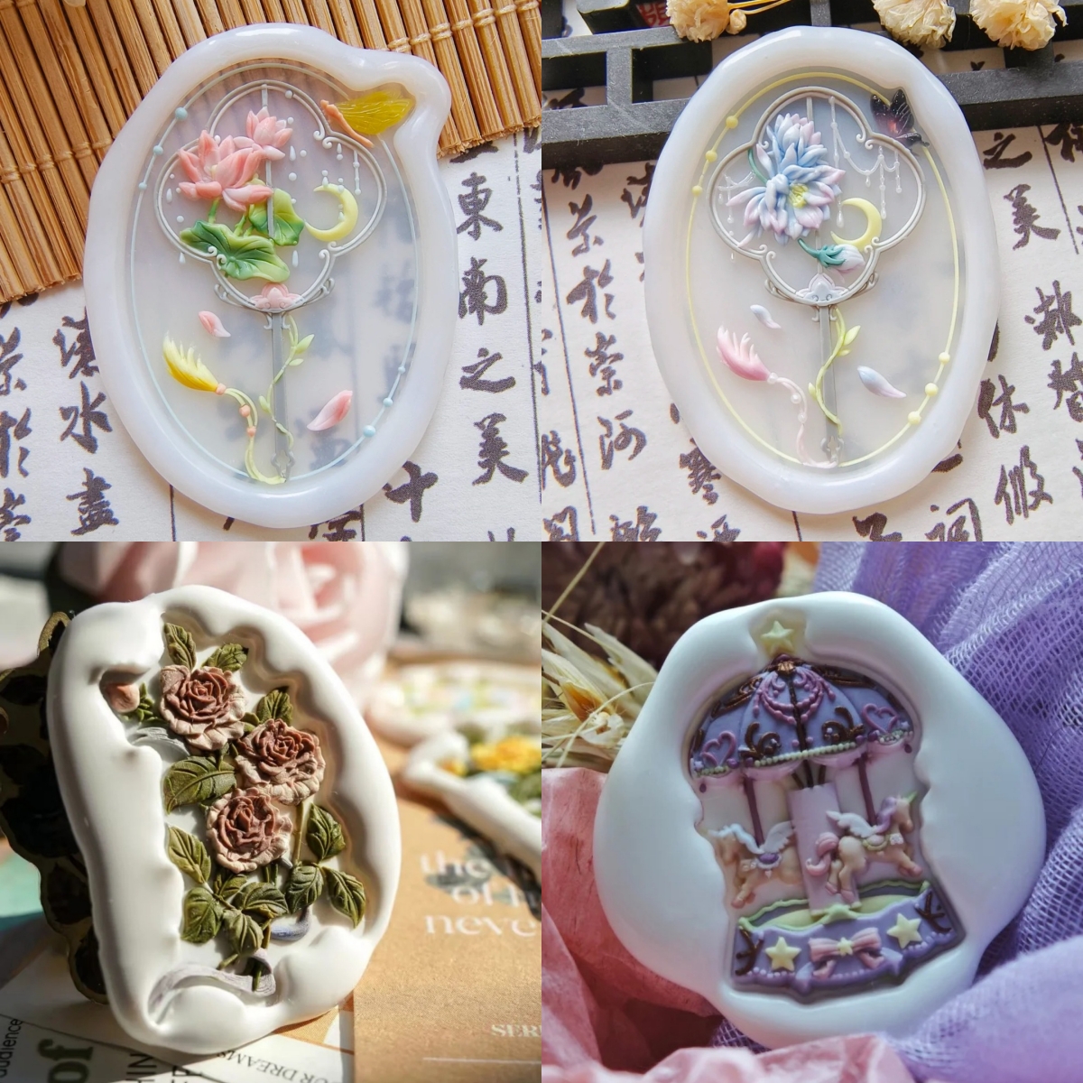 【火漆章头】古风琼花玉扇口袋玫瑰多层浮雕雏菊学生印章铜头邮票