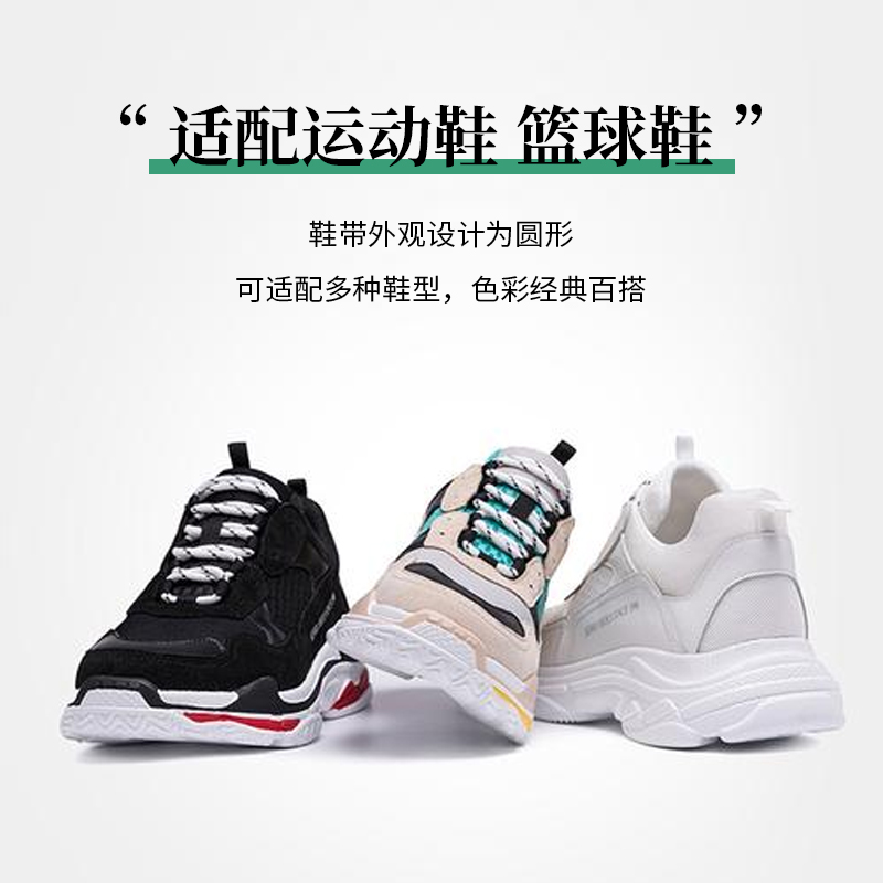吉栗喵鞋带马丁靴运动鞋老爹鞋圆形运动女款男黑米白色鞋带绳扁平