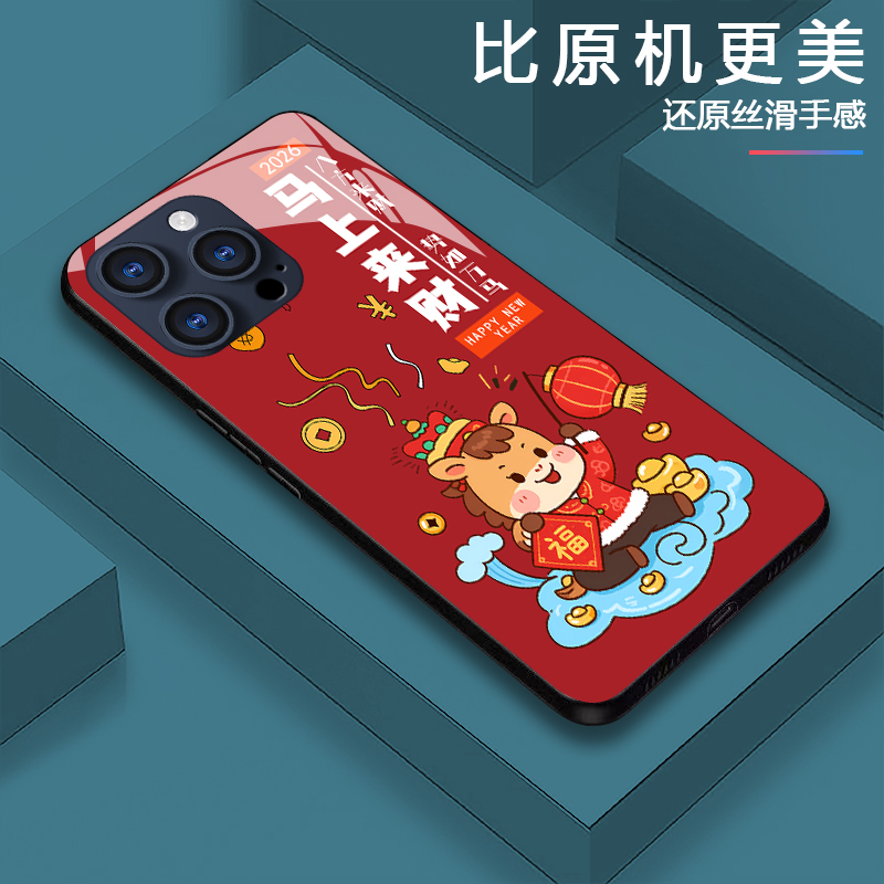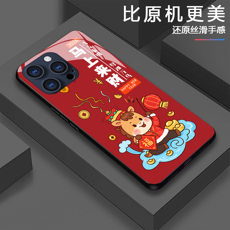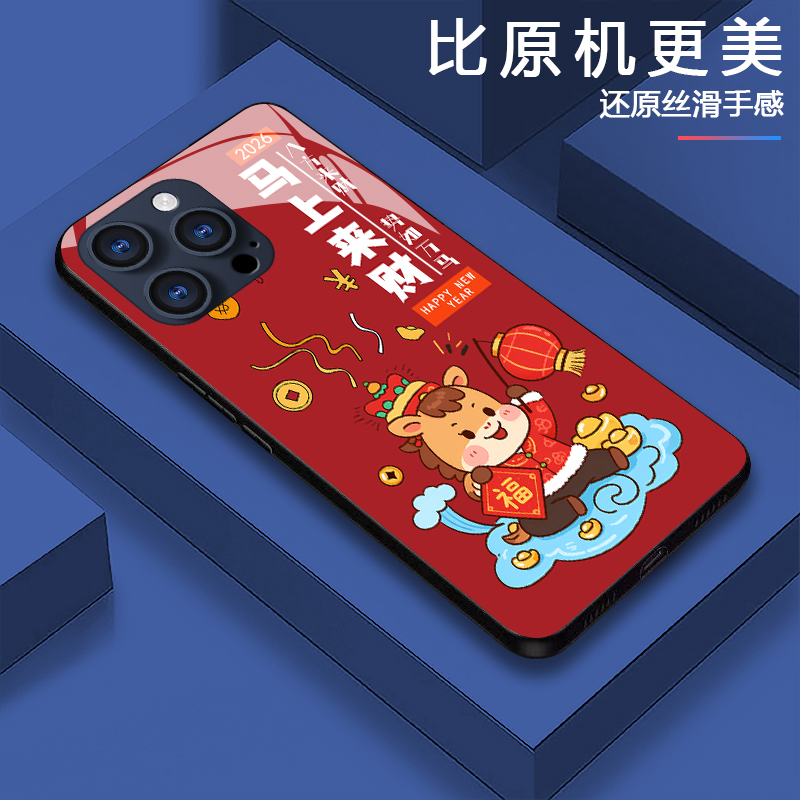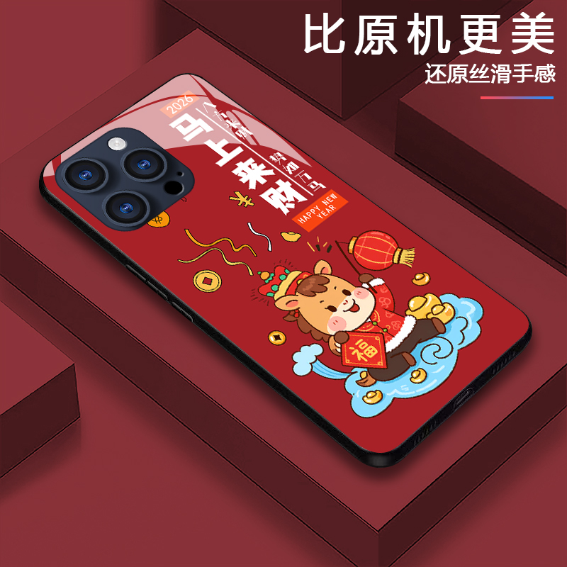 2026新年款适用OPPOReno14手机壳本命年Reno13马年限定12Pro马上来财findx9防摔x8ultra高级感findx7红色小众