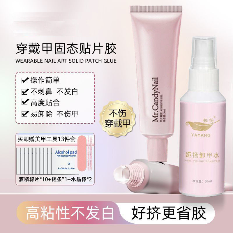 穿戴甲固态胶需烤灯防水持久牢固贴甲片粘合剂可拆卸美甲专用胶水