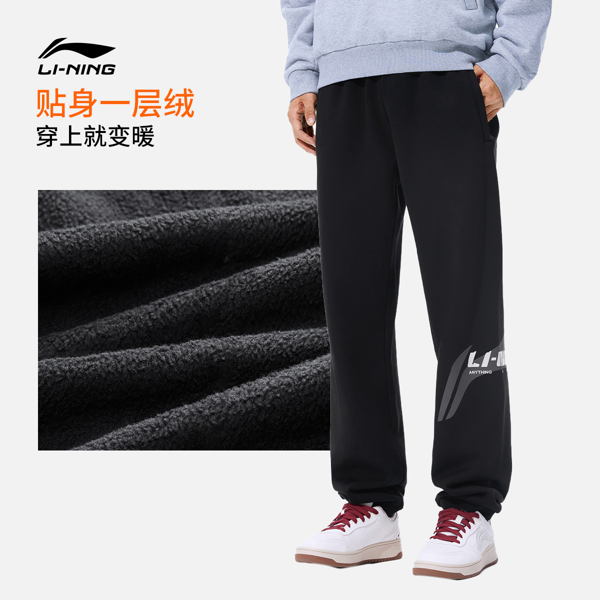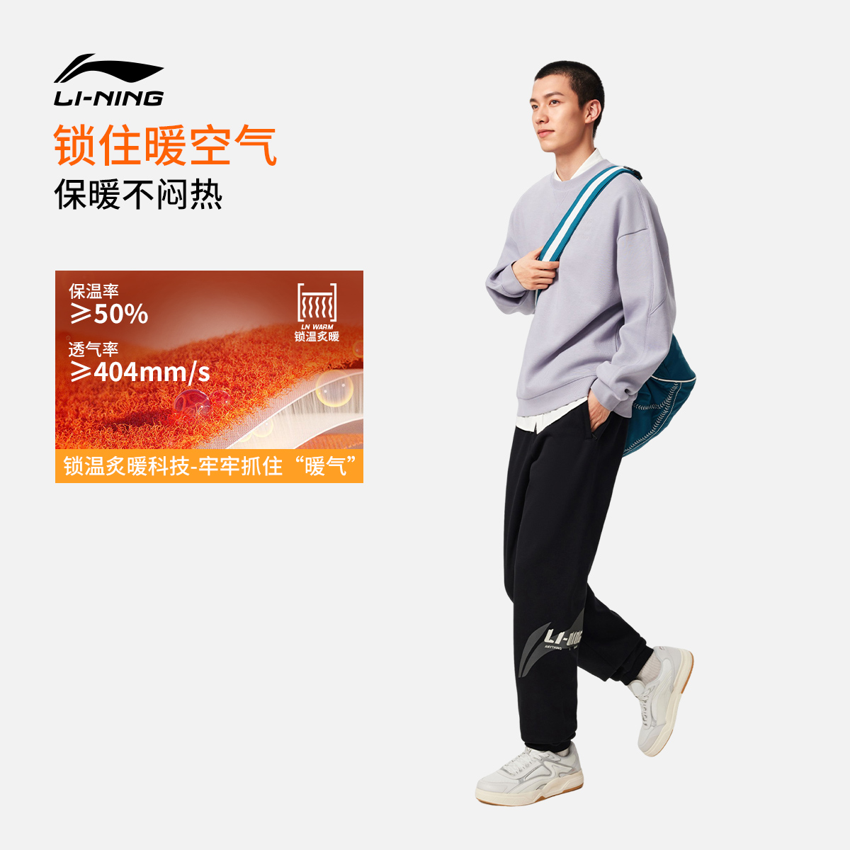 李宁热力裤丨卫裤新款灰色裤子男士秋冬休闲裤加绒束脚针织运动裤