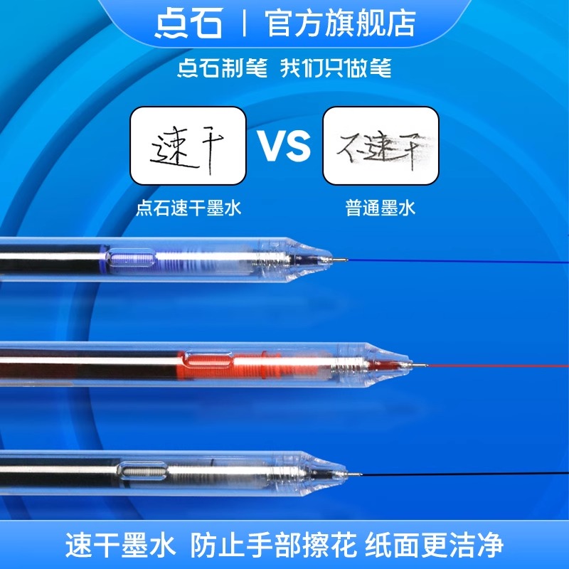 点石中性笔按动静音直液式走珠笔DS-911双珠针管头0.5mm速干顺滑大容量学生黑笔蓝红色刷题笔考试办公签字笔