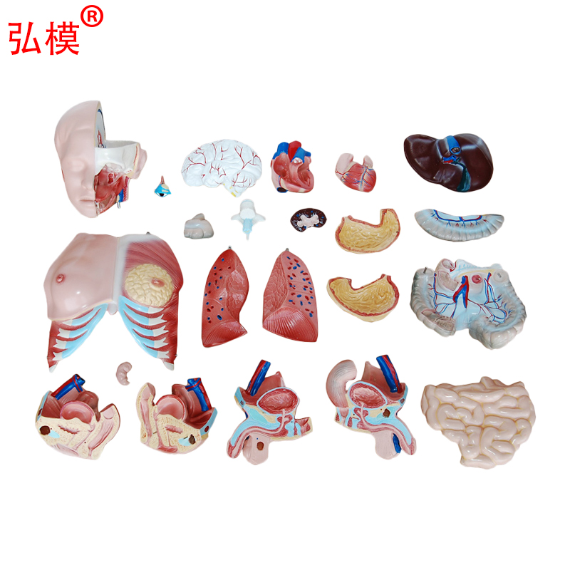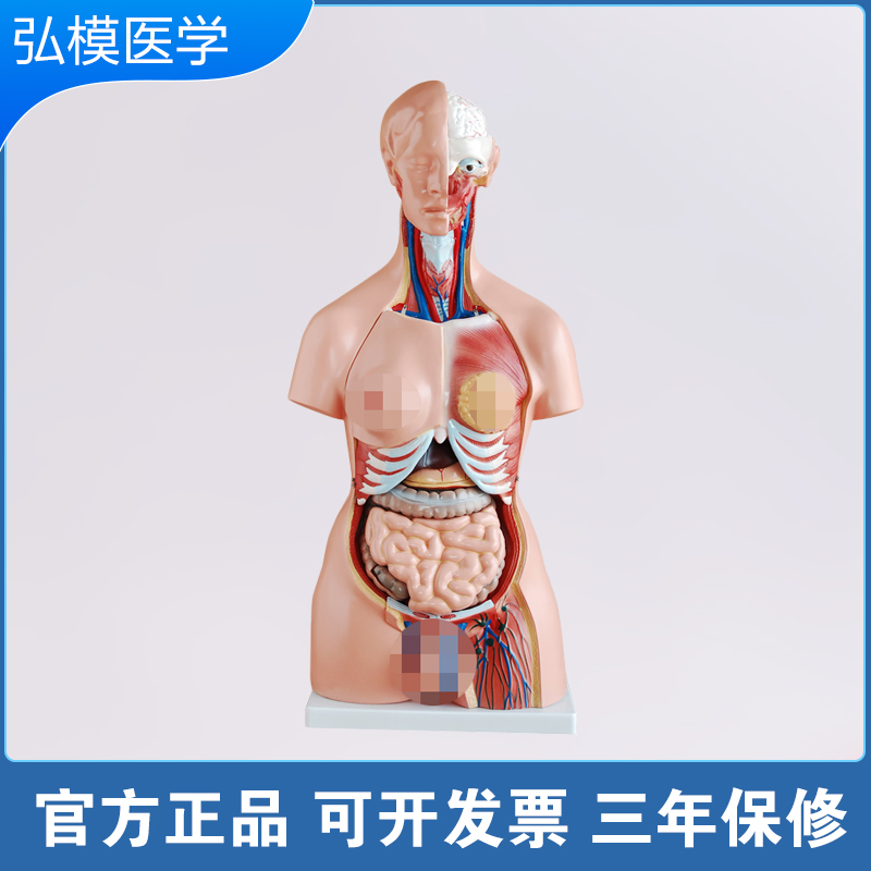 弘模HOM/204两性躯干模型23件85CM可拆卸附内脏 可互换男女生殖器官 子宫含胎儿 人体解刨结教学模型