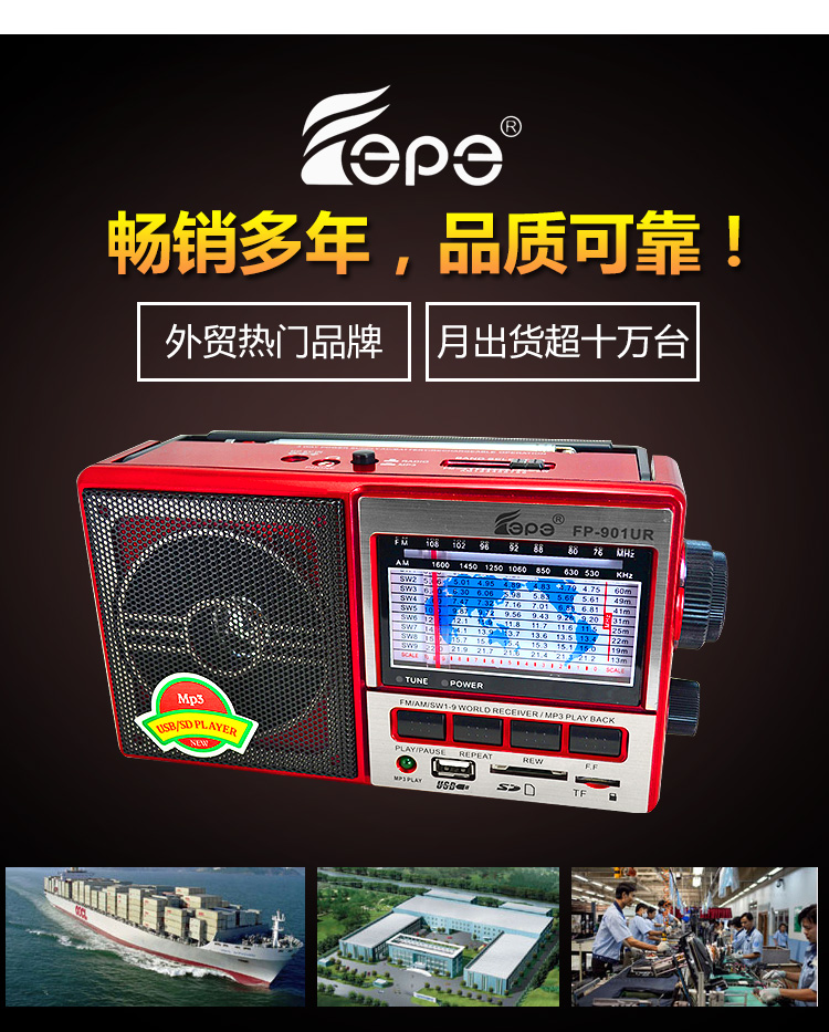 飞鹏901专业DSP多全波段收音机11个中短波交流充电半导体校园广播