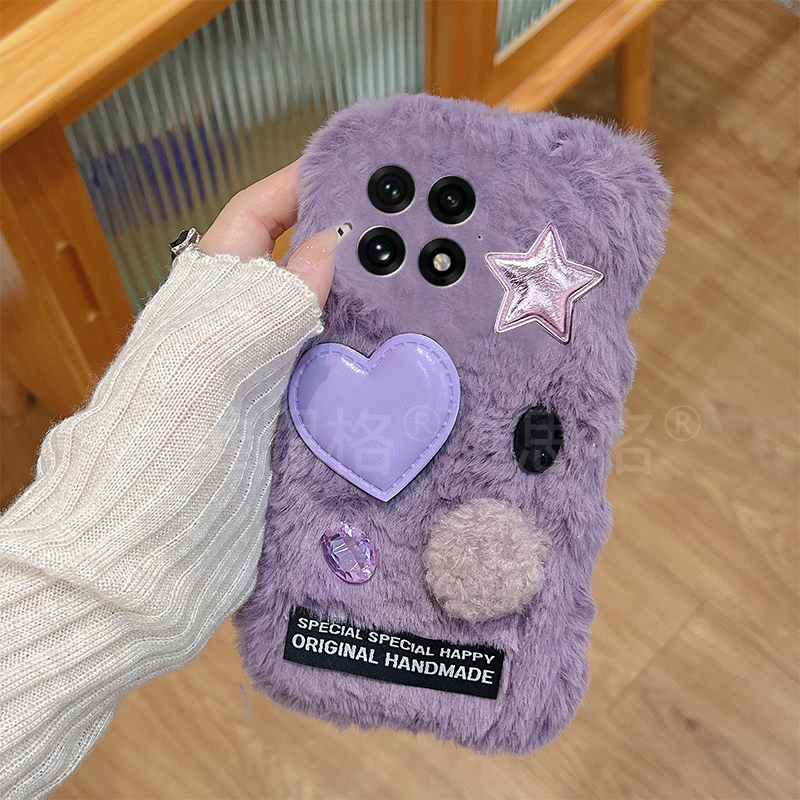 ins风星星爱心适用oppo一加12手机壳ace3钻石2pro立体2v秋冬季1毛绒9rt毛茸茸8t硅胶7tpro紫色6t软1+oneplus