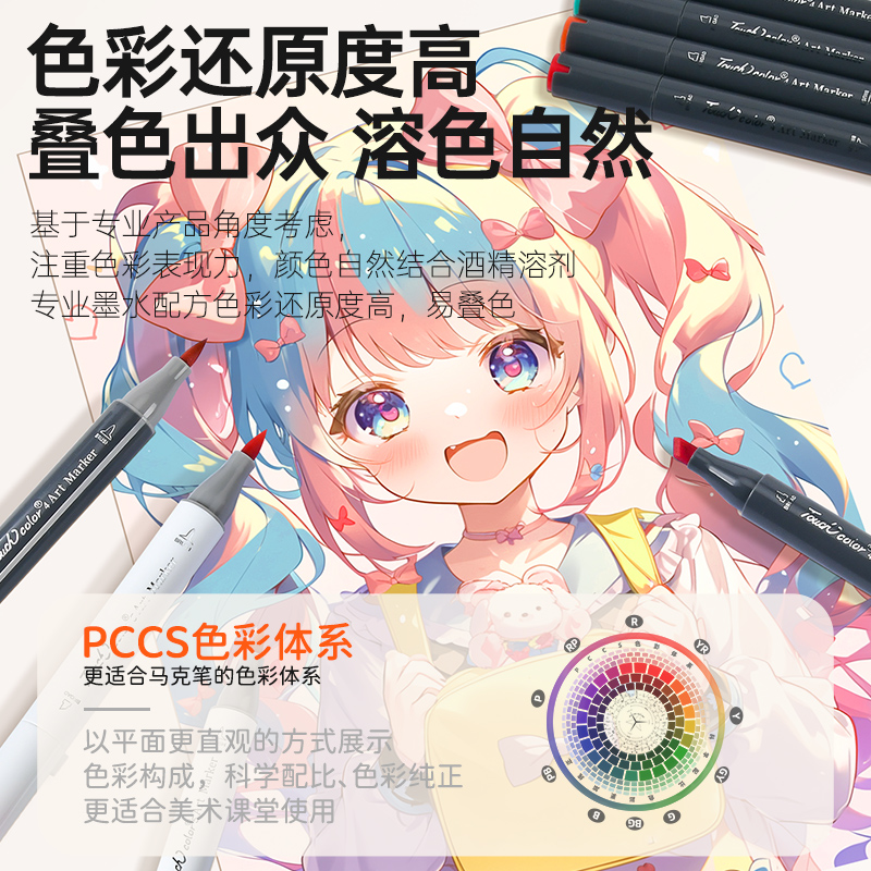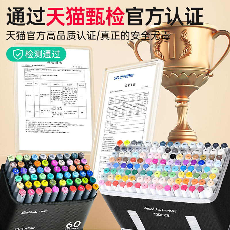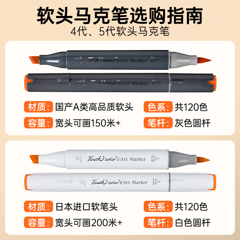 touch color 5代软头马克笔套装美术生专用动漫肤色彩色笔初中生水彩笔4代酒精油性双头笔60/80色软笔头120色