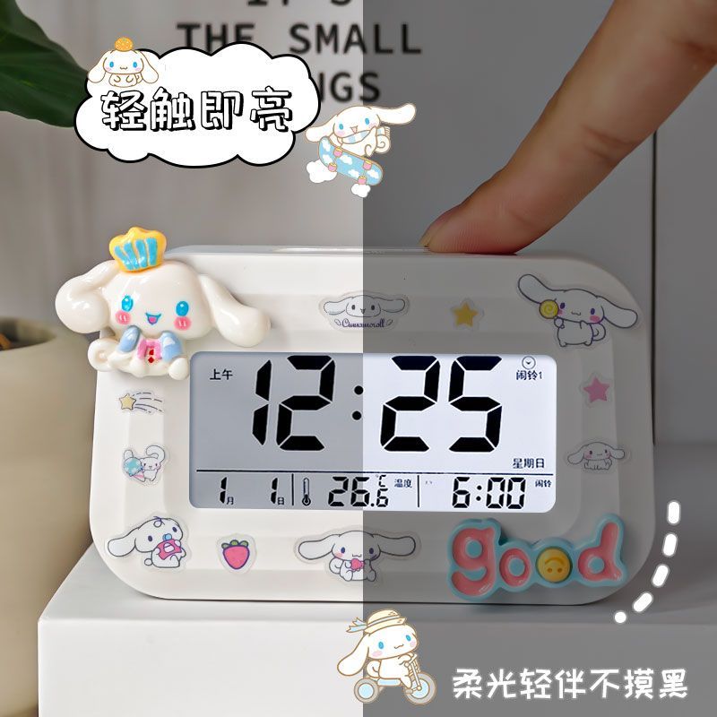 迷你夜光闹钟玉桂狗多功能静音时钟便携学生小巧桌面钟表起床神器