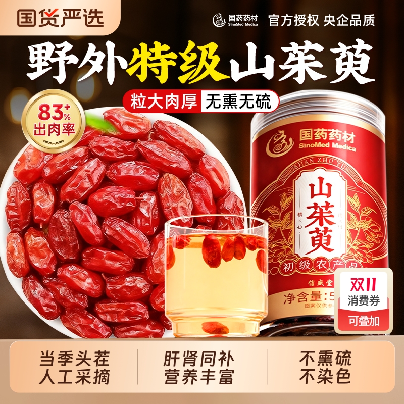 国药特级山茱萸无硫无核肉大野中生药材泡茶官方正品旗舰店搭当归