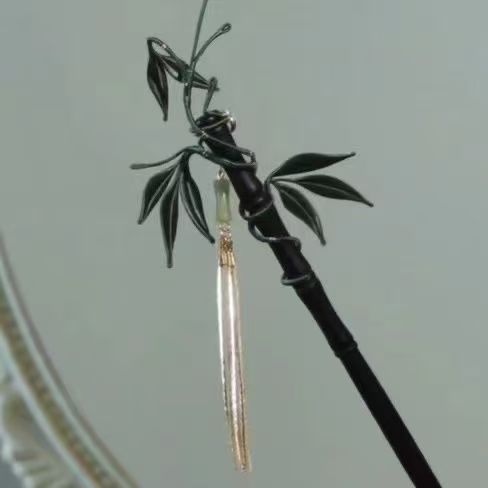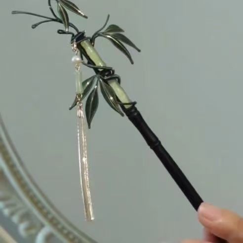 墨绿竹节长款流苏发簪古风高级感小众设计感百搭发簪汉服盘发簪子