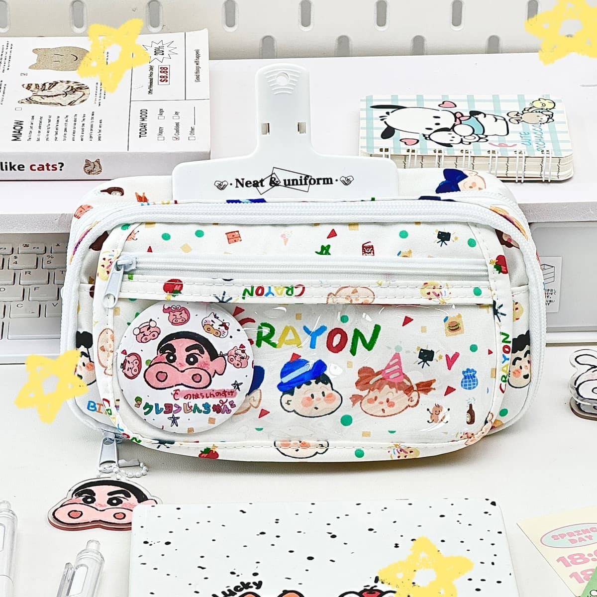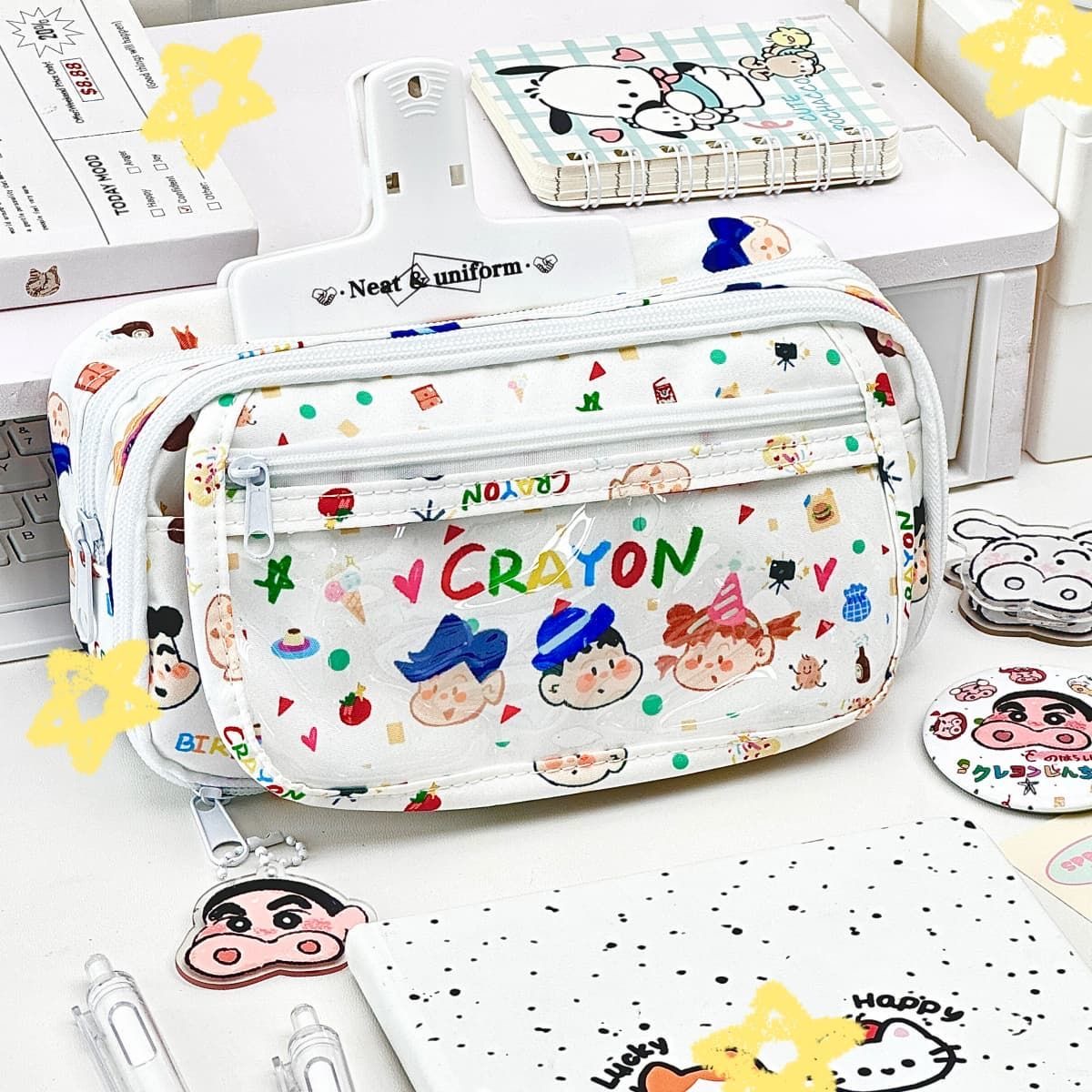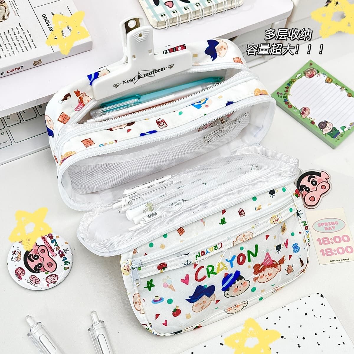 新款蜡笔小新动漫周边痛包卡通印花笔袋学生翻盖大容量文具收纳袋