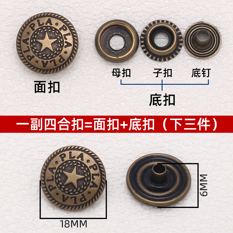 金属铜制四合扣迷彩外套工作服纽扣复古暗扣子隐形纽扣子母扣按扣