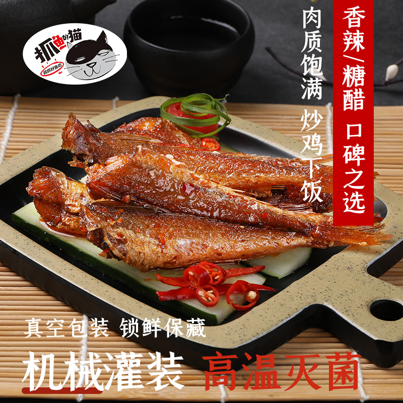 抓鱼的猫香辣糖醋海花鱼红娘鱼零食鱼尾鱼排小吃下酒菜国货竹香