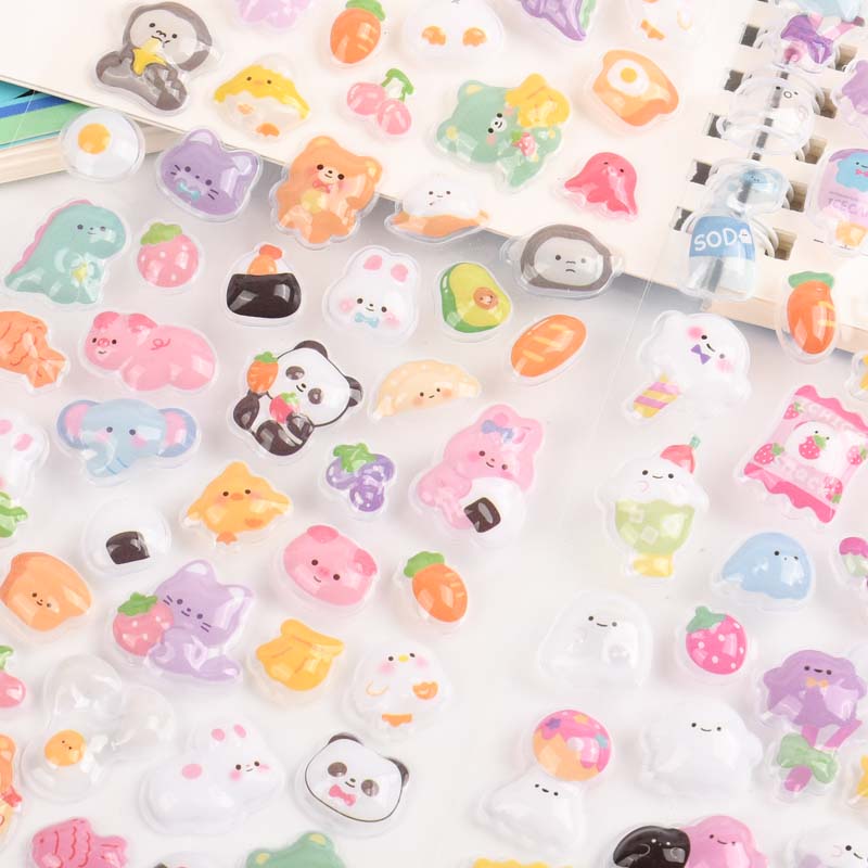 3D立体浮雕贴纸女孩儿童卡通动物宝石贴画钻石手机壳装饰水晶滴胶防水手帐高透明贴贴纸水杯手机后壳玩具家族