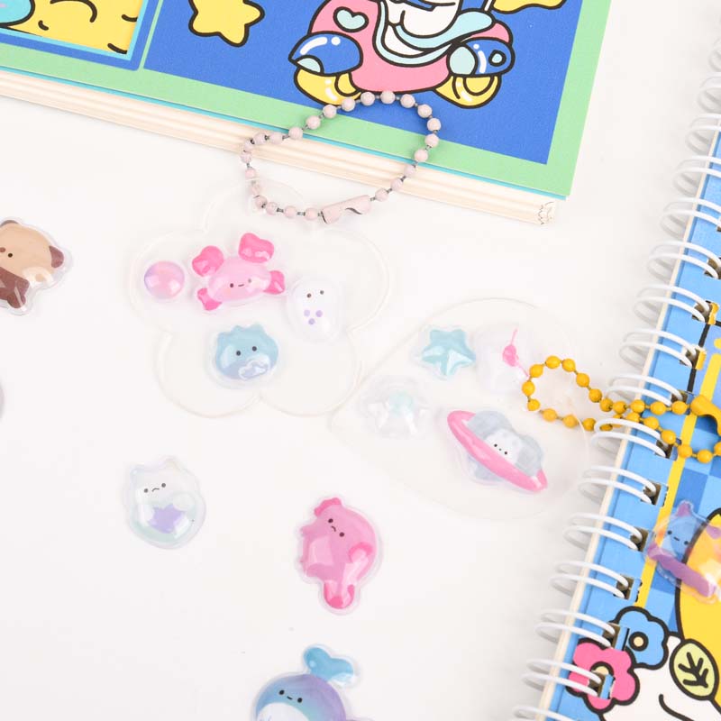日系卡通唯美3d立体浮雕亚克力钻石宝石贴纸儿童女孩装饰贴画diy动物海洋泡泡