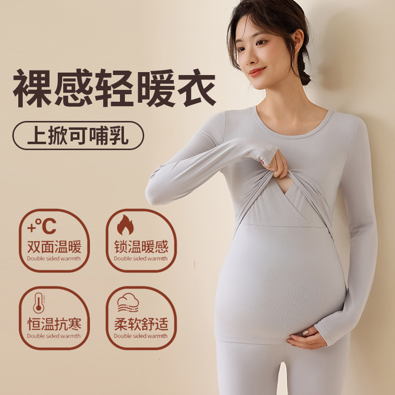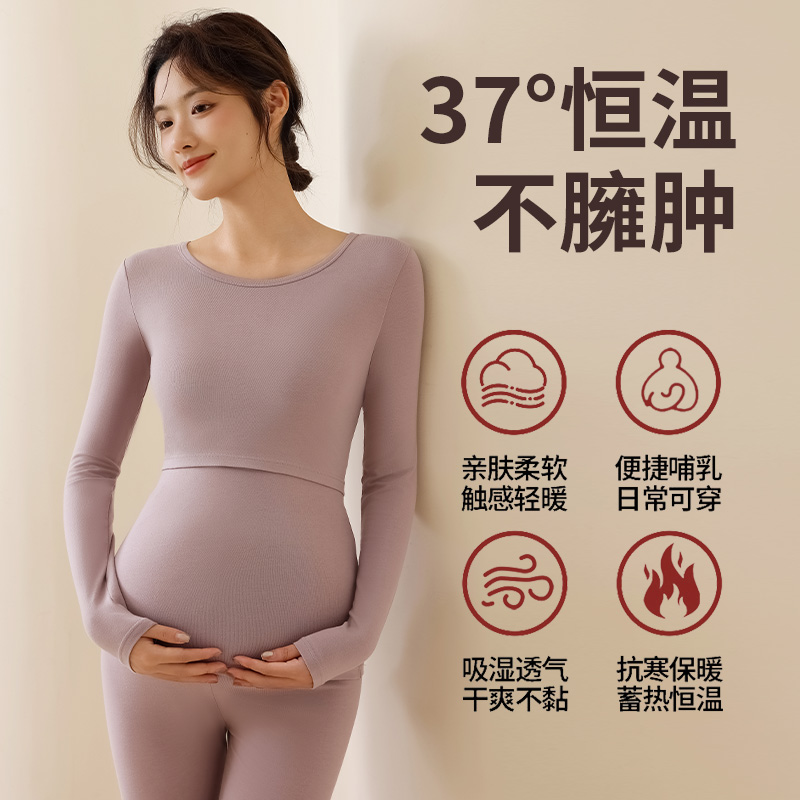 婧麒孕妇秋衣秋裤套装保暖内衣孕期打底产后哺乳喂奶大码月子服冬