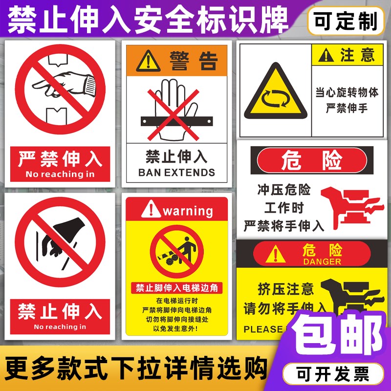 现货速发禁止伸入警示牌旋转注意挤压冲压危险请勿将手伸入安全标